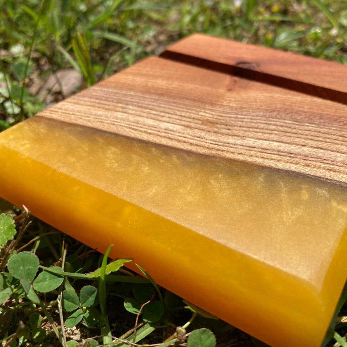 ウッドレジン ポストカードスタンド(濃いイエロー:ケヤキ)mawore-p006